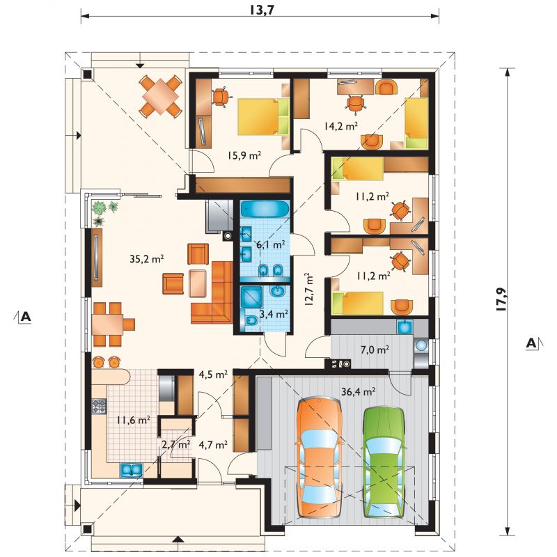Plan zagospodarowania przestrzeni wewnątrz domu.